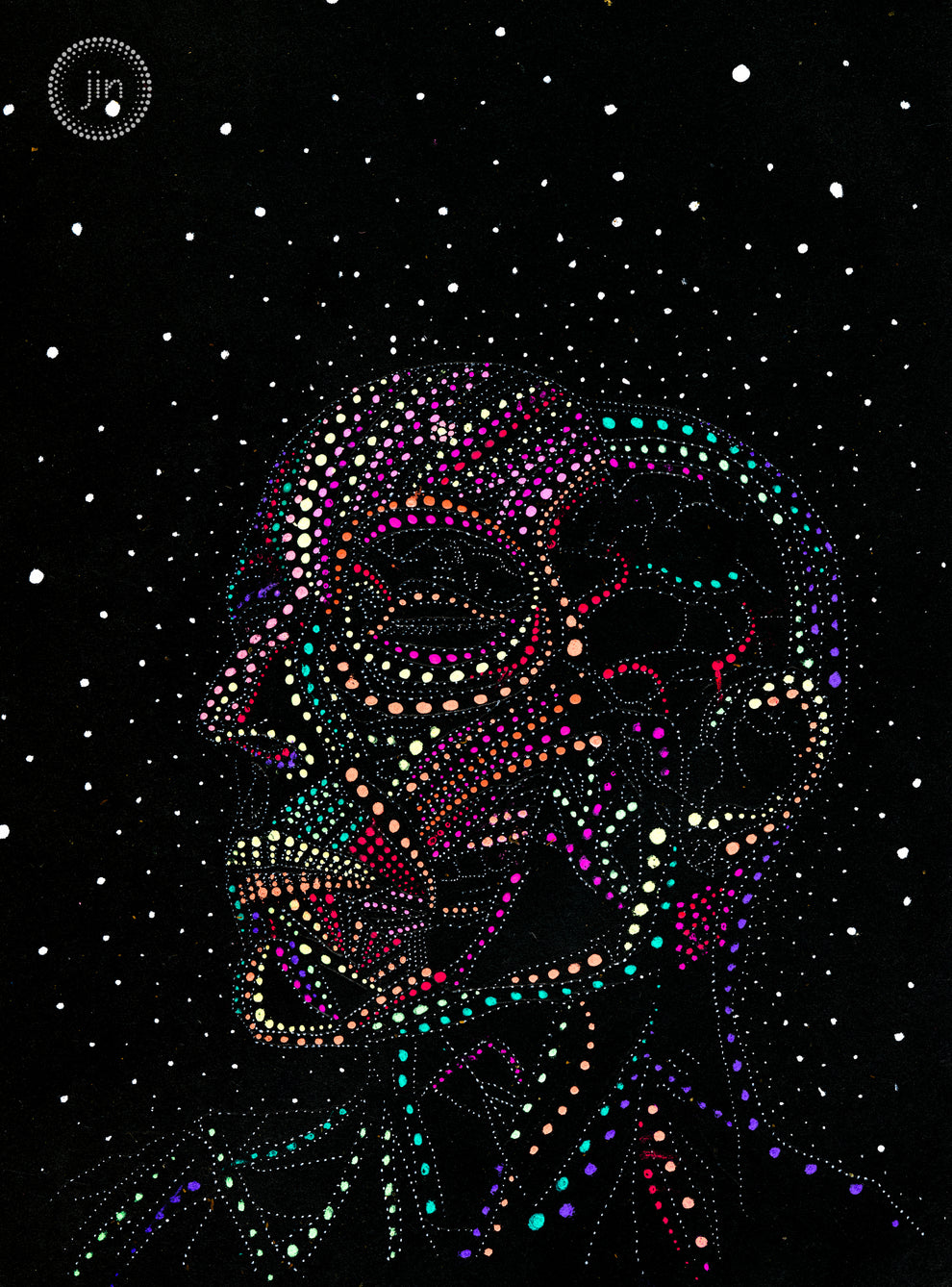 Unlike fast digital art, Jindots follows a slow, analogue process. Every dot is placed with patience and intention, like a visual mantra. Drawings often take over a month to complete, requiring hundreds of hours of focus. This deliberate practice is a grounding ritual in today’s fast-moving, digital world.